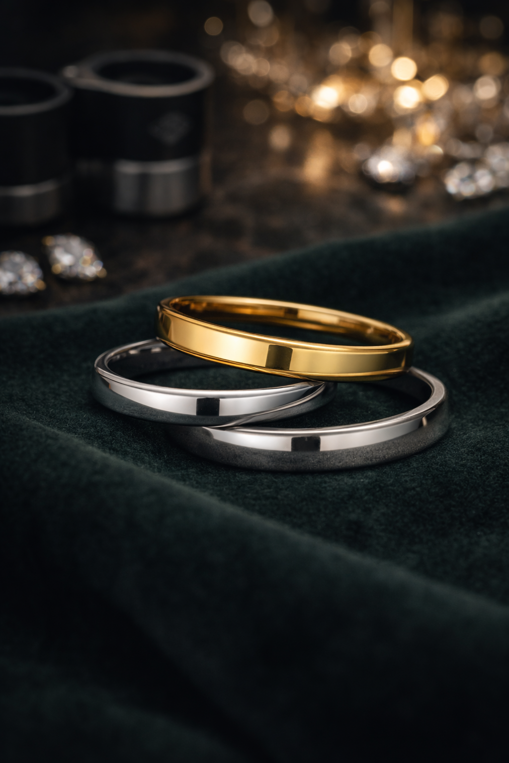 Rose gold carries a soft blush that feels romantic without being overt. It is flattering, gentle in tone, and often chosen by those who want a modern design with warmth and individuality.